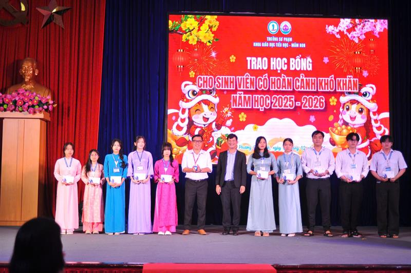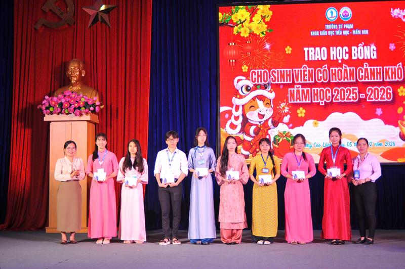 Dịp này, Khoa Giáo dục Tiểu học - Mầm non, Trường Sư phạm đã nhận được sự hỗ trợ học bổng cho sinh viên từ Thầy Nguyễn Văn Luận và Ông Trương Chí Phước. Đoàn Khoa đã trao tặng 40 suất học bổng cho sinh viên có hoàn cảnh khó khăn, có tinh thần vượt khó trong học tập năm học 2025 - 2026.