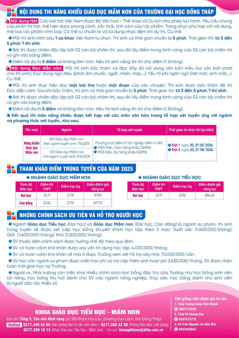 THÔNG TIN TUYỂN SINH NĂM 2026 KHOA GIÁO DỤC TIỂU HỌC - MẦM NON